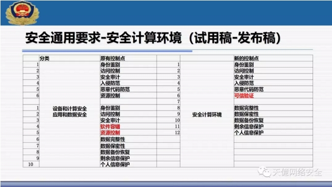 (3)新標(biāo)準(zhǔn)里把可信計(jì)算使用寫入了標(biāo)準(zhǔn)范圍,從一級(jí)開始到四級(jí)全部提出了可信驗(yàn)證空間。 ?